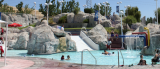 Seasonal city water park with pools, slides & waterfalls, plus a floating bridge, amid big rocks. Located in Antioch, CA.