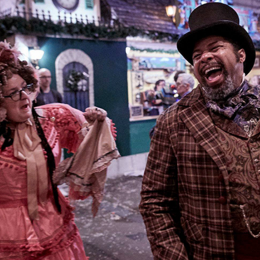 The Great Dickens Christmas Fair is a one-of-a-kind immersive adventure into Victorian London ~ an elaborate holiday party with hundreds of costumed players performing and interacting with patrons in over 140,000 square feet of theatrically-lit music halls, pubs, dance floors, and festive shops. It's a twilight evening in Charles Dickens' London Town - a city of winding lanes filled with colorful characters from both literature and history. Enticing aromas of roasted chestnuts and hearty foods fill the air. Cries of street vendors hawking their wares ring out above the bustling crowd. Dozens of lamplit shops are filled to overflowing with handmade gifts. The Dickens Christmas Fair is a treasured Bay Area tradition since 1970 and a splendid way to celebrate the holidays.